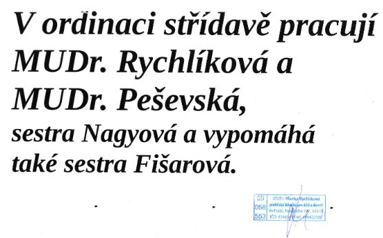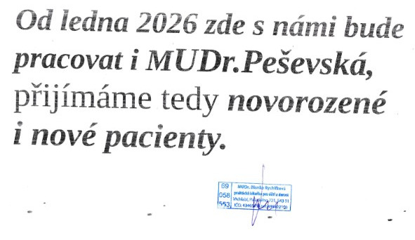 - Vážení rodiče, milí pacienti, na všechna vyšetření (prevence i nemocní) se prosím předem objednejte. Telefonicky